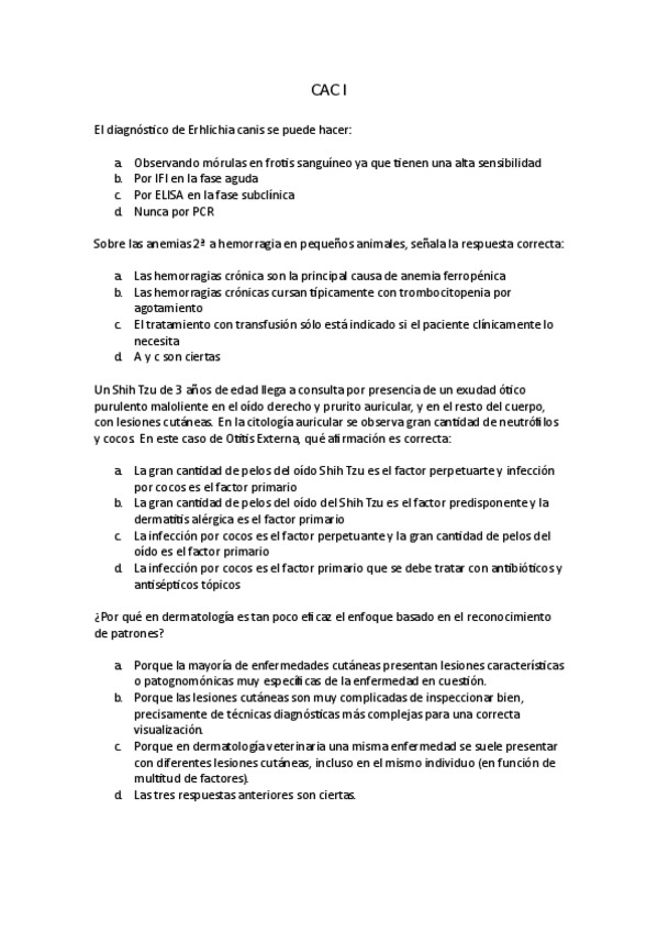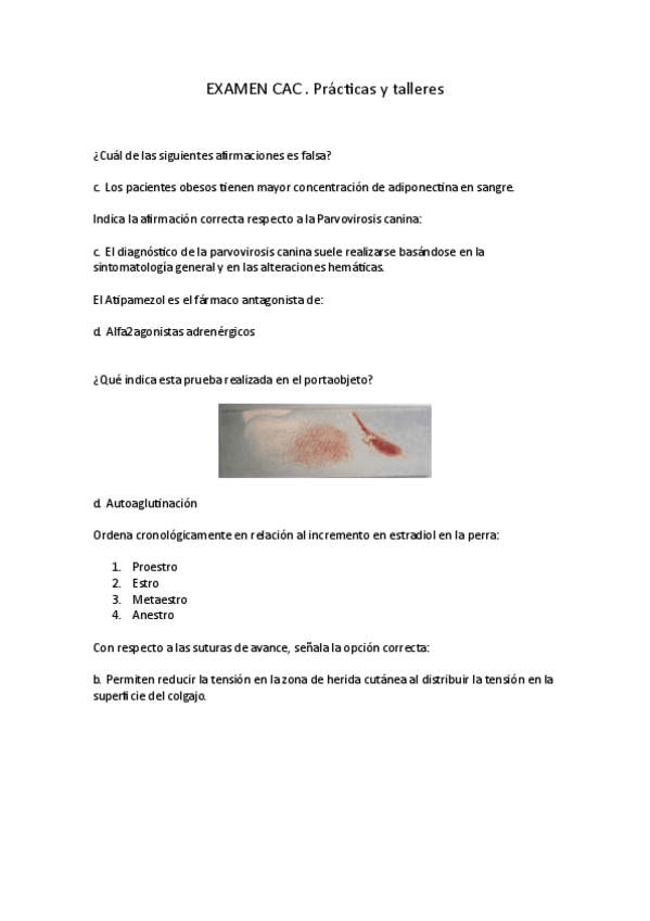 He publicado nuevos examenes de 3º Clínica de Animales de Compañía I: EXAMEN-CAC-practicas-y-talleres.pdf