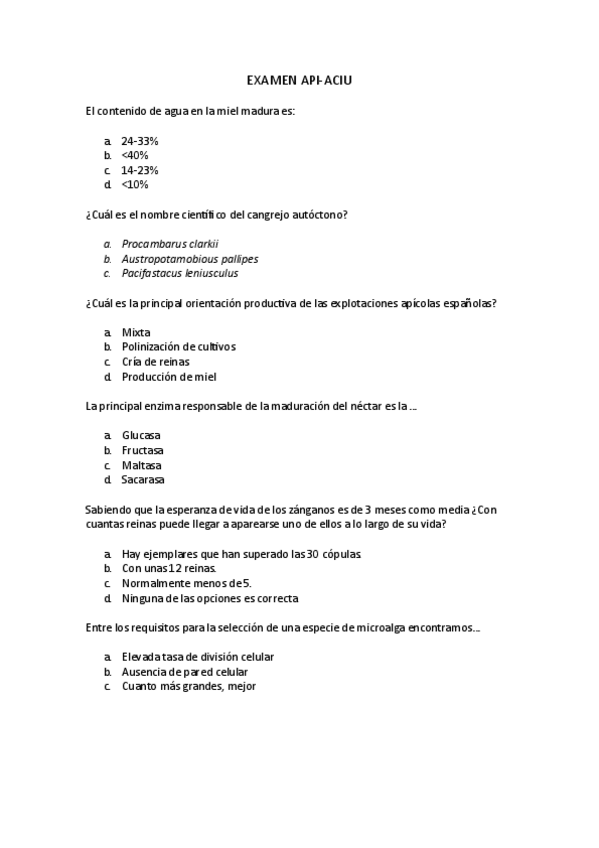 He publicado nuevos examenes de 4º Gestión de Explotaciones, Sanidad y Producción en Acuicultura y Apicultura: EXAMEN-API-Y-ACUI.pdf
