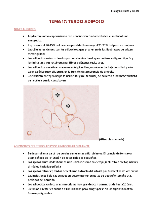 He publicado nuevos apuntes de 1º Biología Celular e Histología: TEMA 17-Tejido adiposo.pdf