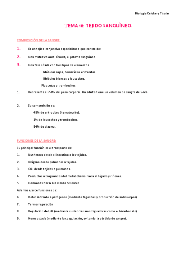 He publicado nuevos apuntes de 1º Biología Celular e Histología: TEMA 18 - Tejido sanguineo.pdf