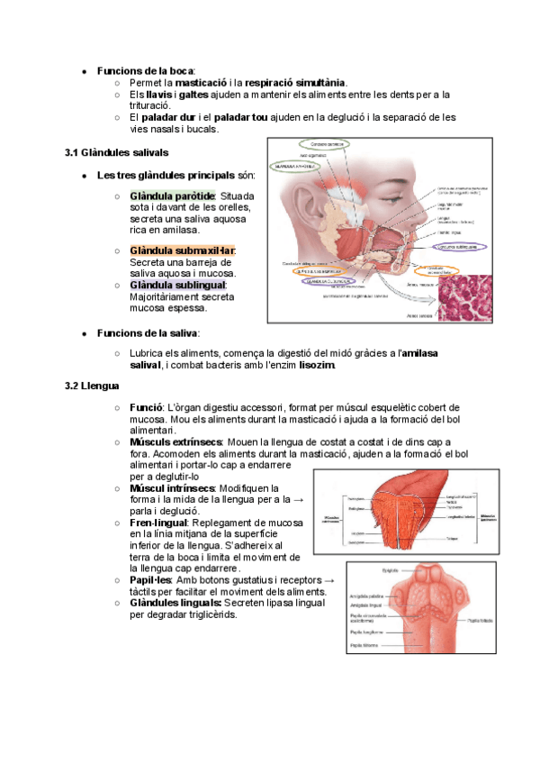 1. Generalitats de l'aparell digestiu. 2. El peritoneu 3. La boca 4. Faringe 5. Túniques de l'aparell digestiu 6. Esòfag 7. La deglució 8. L'estómac 9. Pàncrees 10. Fetge i vesícula biliar 11. Intestí prim 12. Intestí gros