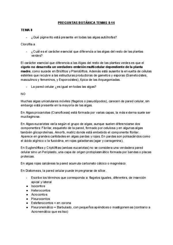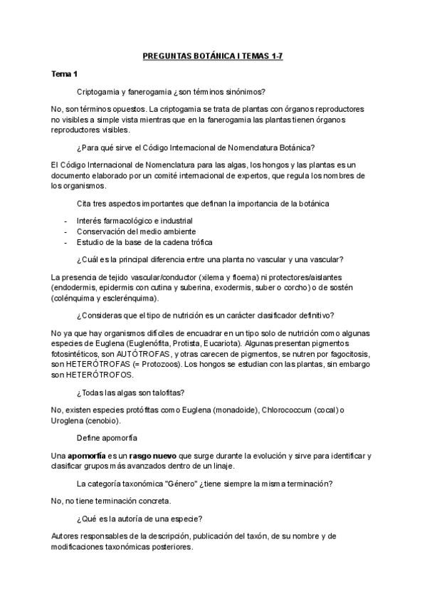 Preguntas de repaso Botánica I