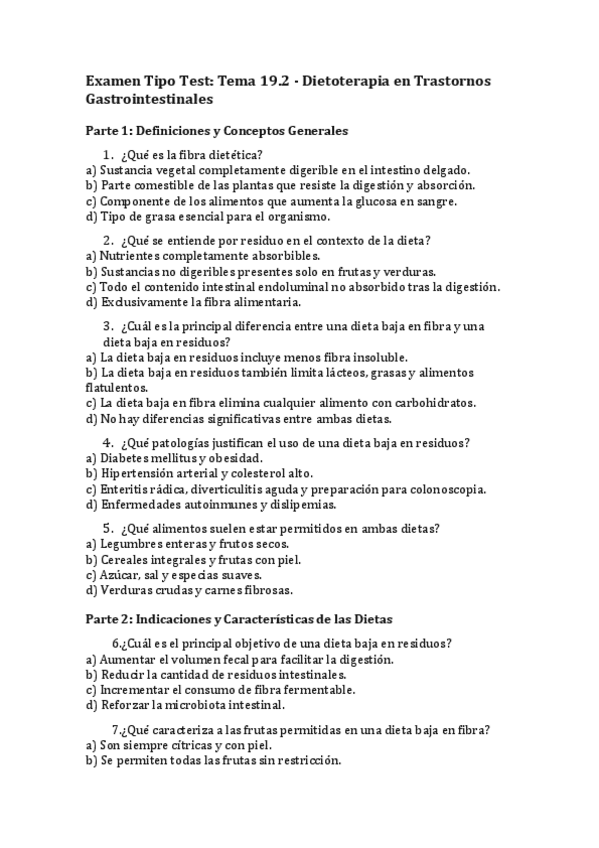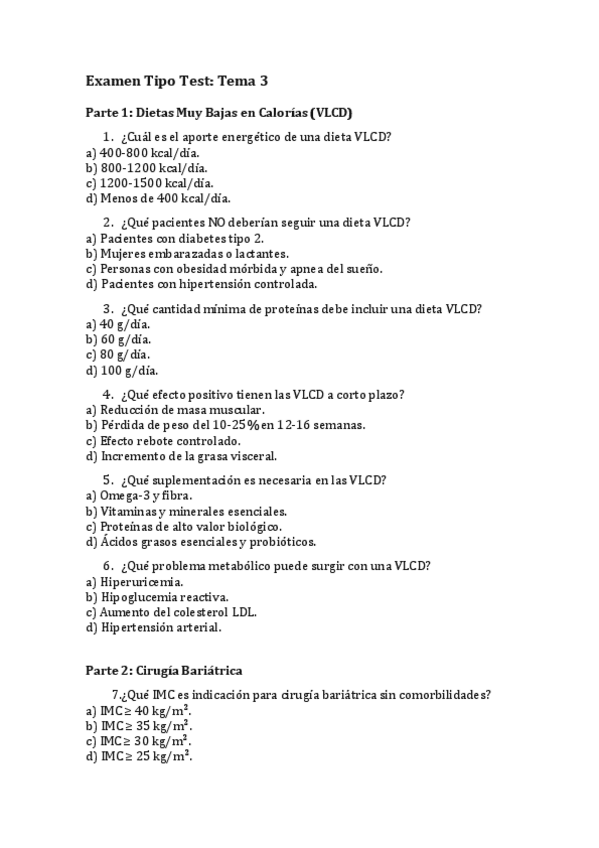 He publicado nuevos examenes de 3º Dietoterapia: Preguntas tipo test
