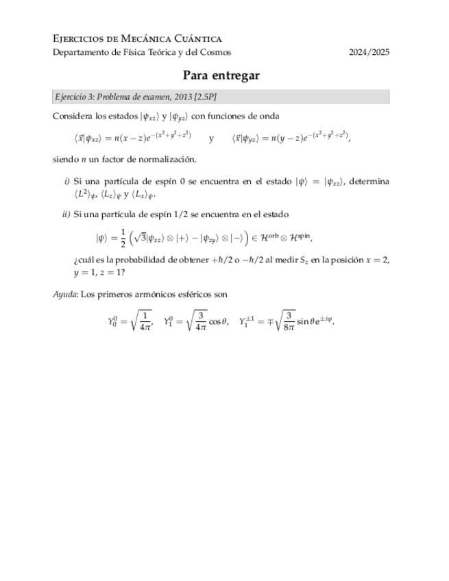 He publicado nuevos ejercicios de 4º Mecánica Cuántica: Ejercicios Propuestos 2024-2025