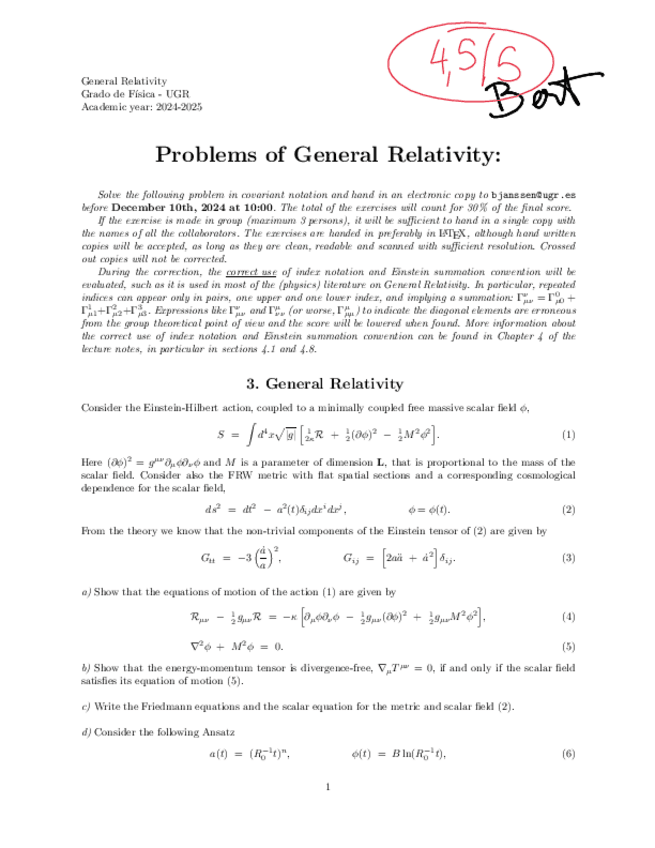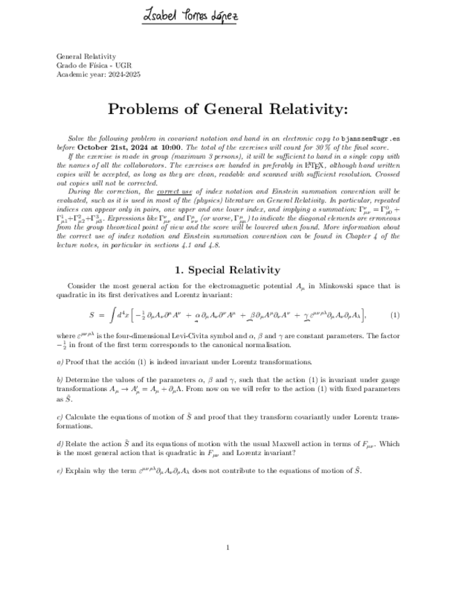 He publicado nuevos ejercicios de 4º Relatividad General: Ejercicios propuestos