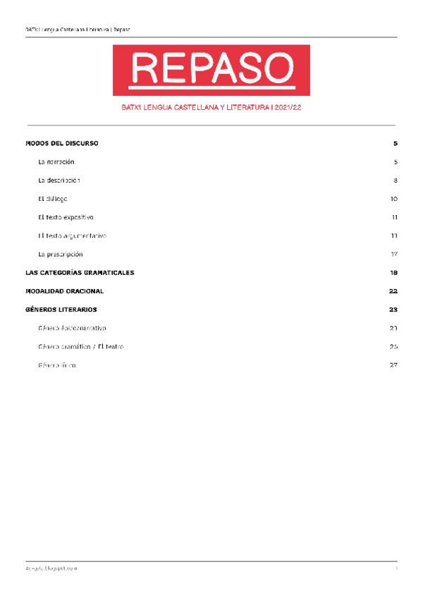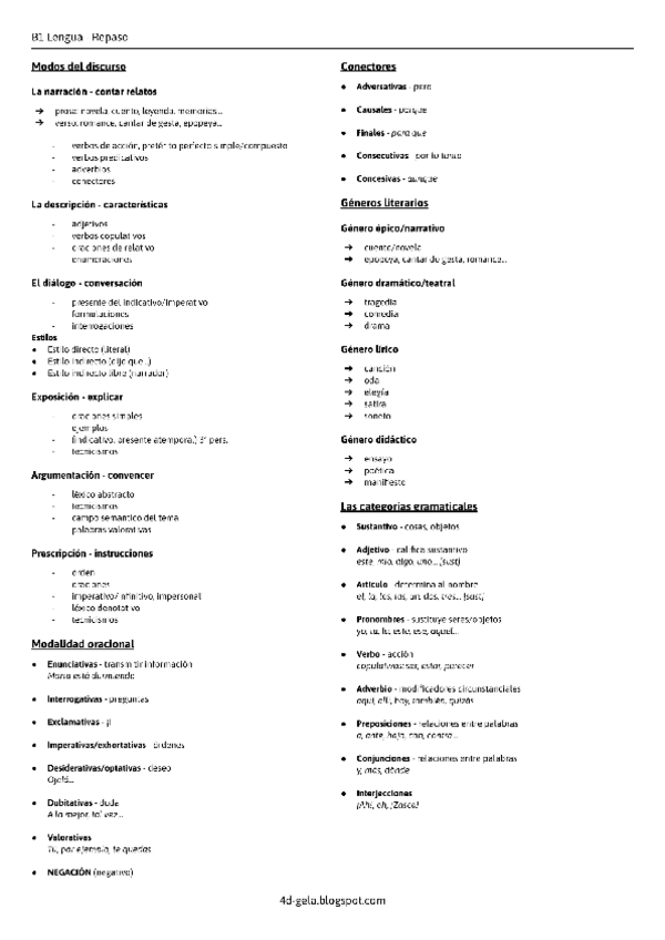 B1 Lengua Castellana y LITERATURA; Apuntes, esquemas, resúmenes...