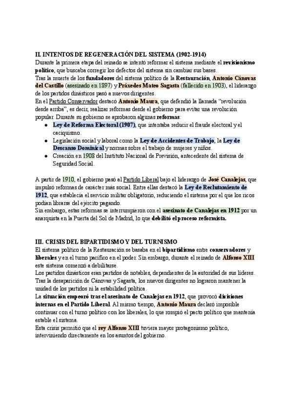 Resúmenes de los temas 12, 13 y 14 de Historia de España PAU Murcia.