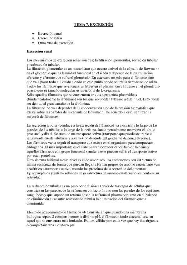 He publicado nuevos apuntes de 4º Biofarmacia y Farmacocinética: TEMA 7. EXCRECIÓN.pdf