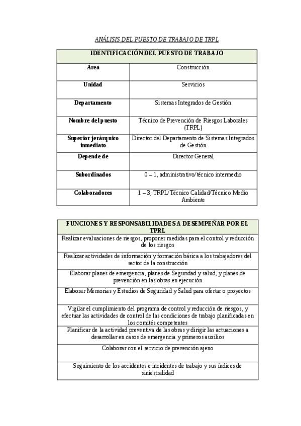 He publicado nuevos apuntes de 3º Dirección de Recursos Humanos: ANÁLISIS DEL PUESTO DE TRABAJO DE TRPL.docx