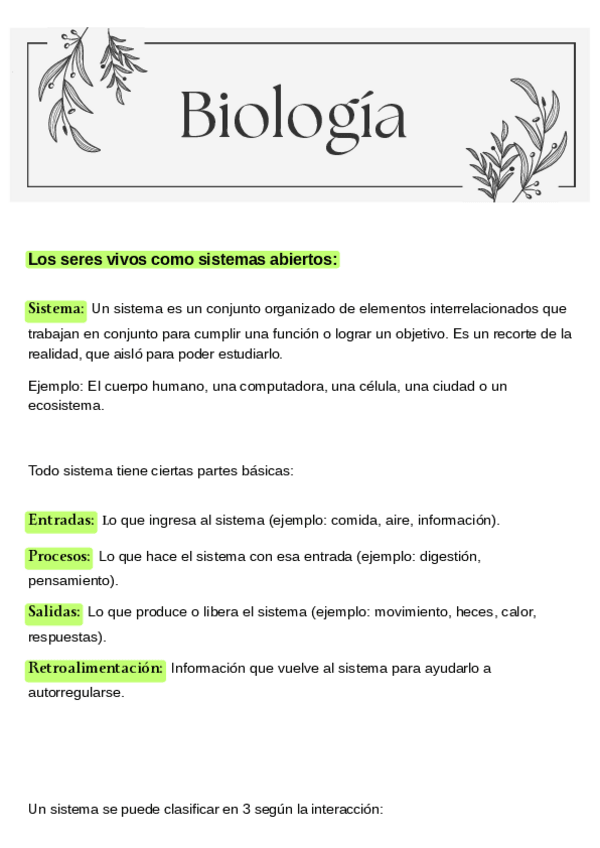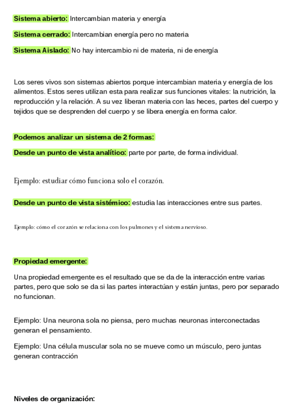 Sistemas de los seres vivos, niveles de organización y nutrición de los seres vivos