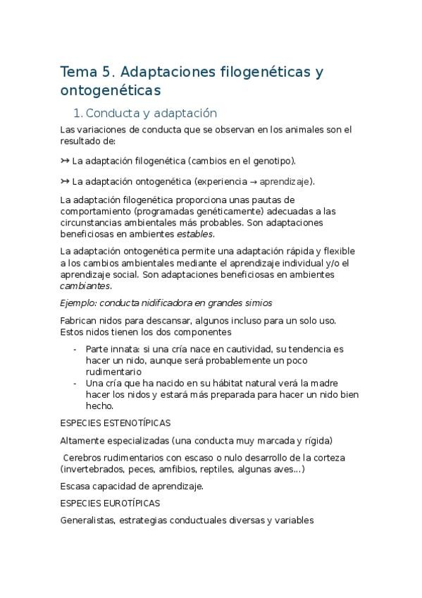 He publicado nuevos apuntes de 1º Etologia i Evolucio de la Conducta: Etologia-tema-5.docx