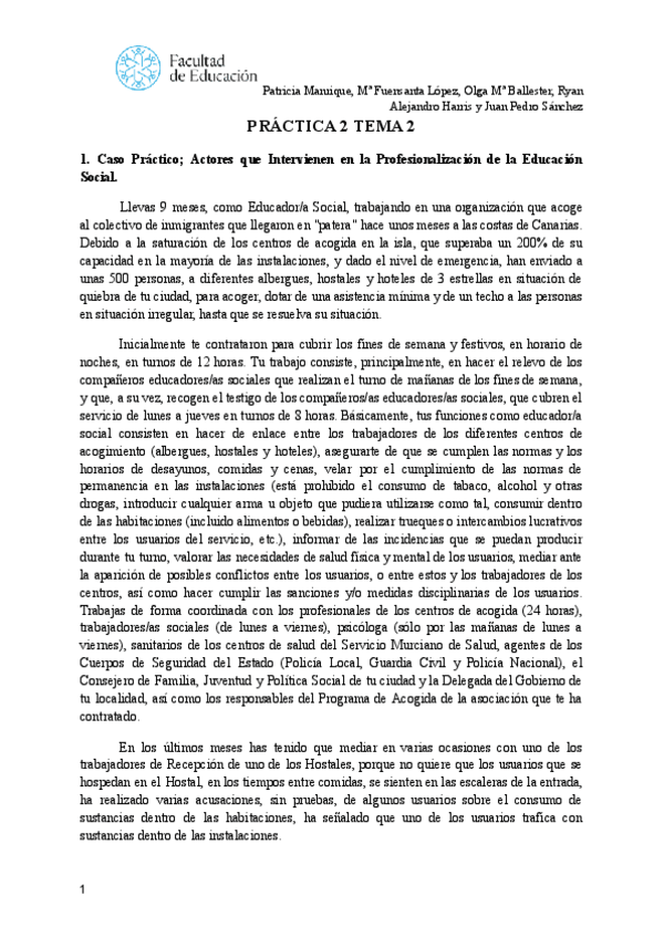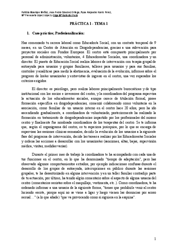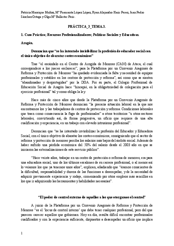 He publicado nuevos ejercicios de 3º el Educador Social. Profesionalización y Deontología: PRÁCTICAS