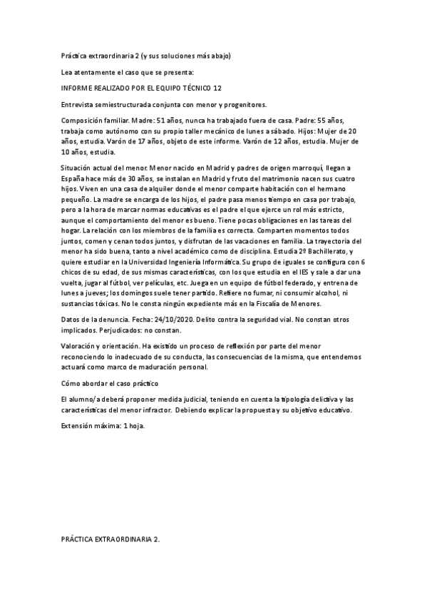 Estas son las soluciones de la práctica extraordinaria de la "Entrevista semiestructurada conjunta con menor y progenitores"de fundamentos del derecho penal 2023/24
