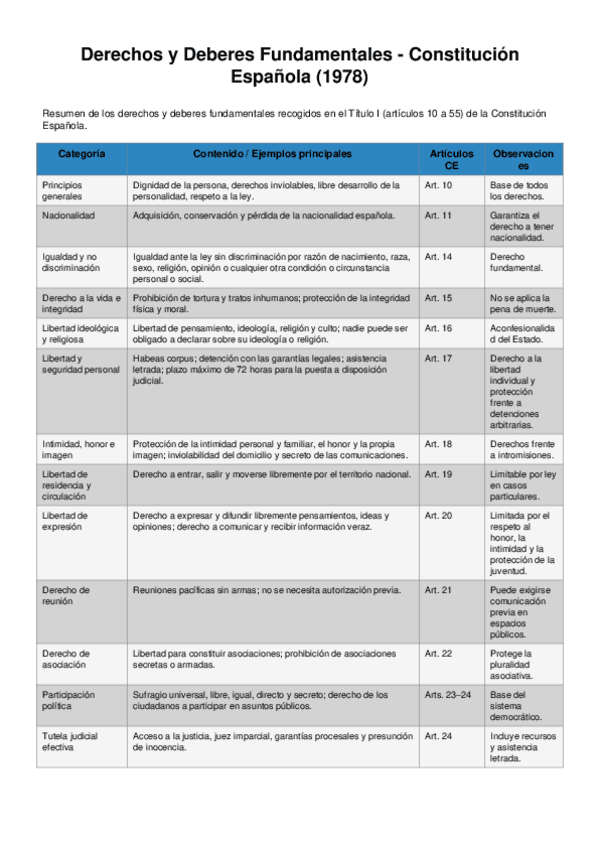 Derechos y Deberes fundamentales constitución española