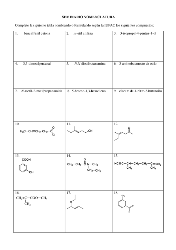 SEMINARIOS Y EJERCICIOS QUÍMICA