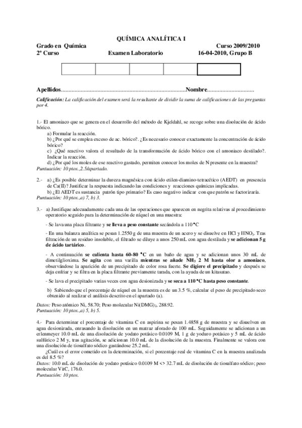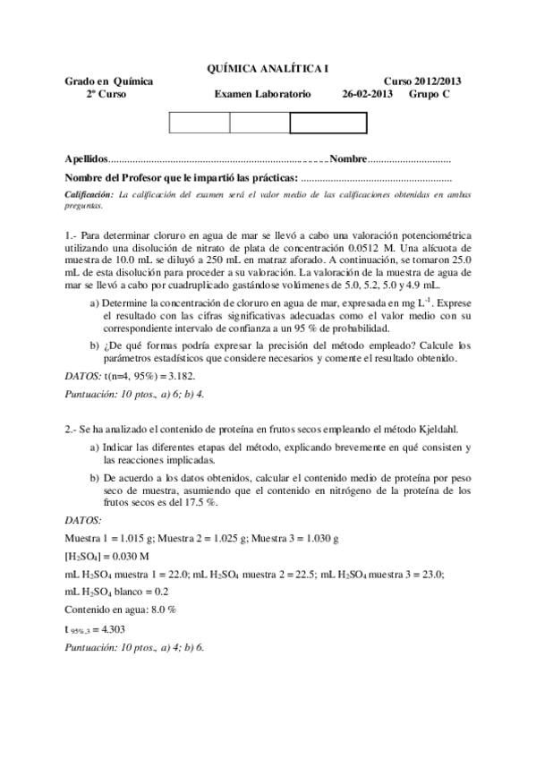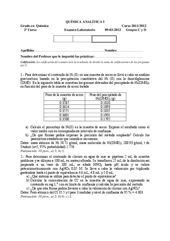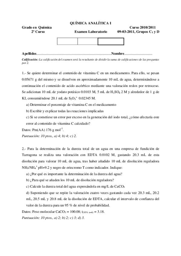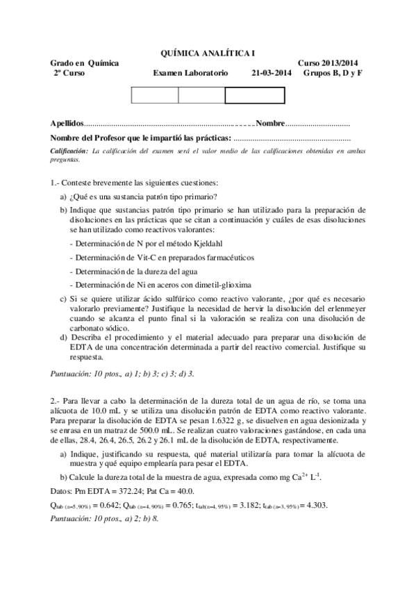 Exámenes laboratorio Q.Analítica I