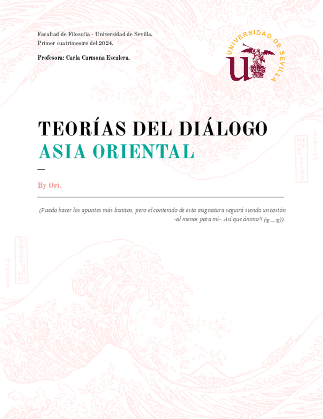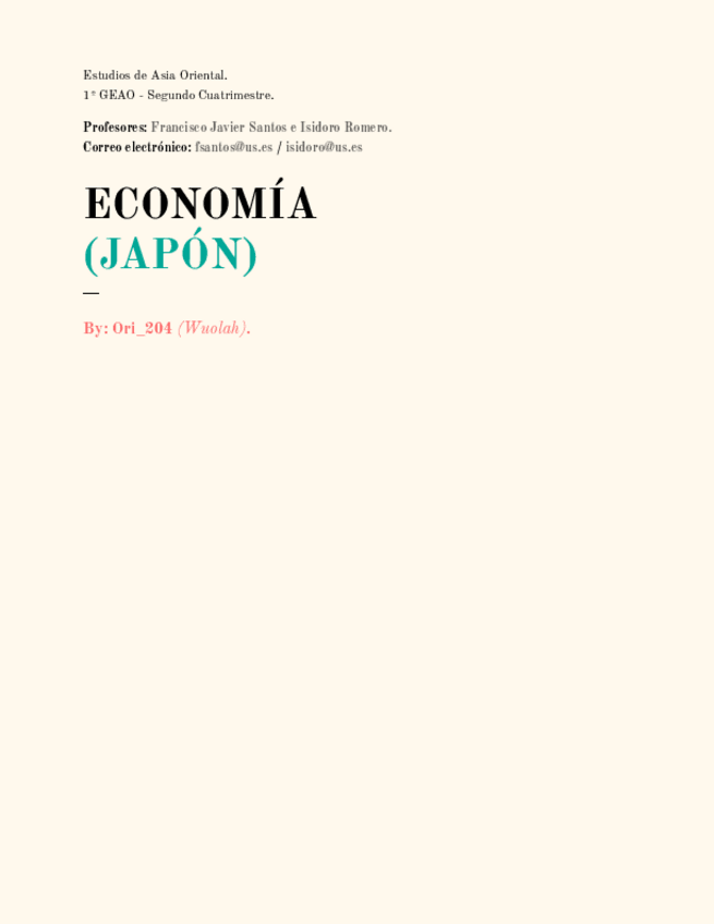 Bio: Sáquenme de la Universidad, por favor. Iré subiendo poco a poco los apuntes de todas las asignaturas de primero de GEAO (Estudios de Asia Oriental) y dando ánimos a todxs lxs que los uséis. ¡Suerte! 一緒に頑張りましょう!! Hago únicamente la mención Japón, lo siento :(