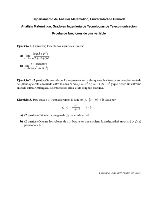 He publicado nuevos ejercicios de 1º Análisis Matemático: Parciales noviembre