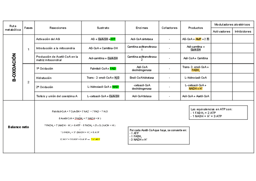 He publicado nuevos apuntes de 2º Bioquímica: Tablas metabolismo