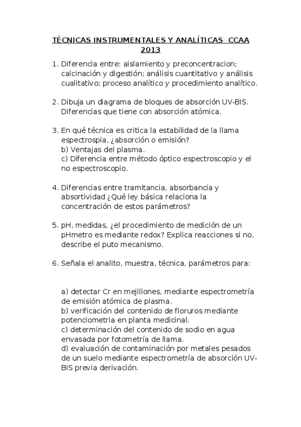 He publicado nuevos examenes de 1º Técnicas Instrumentales de Análisis Ambiental: examen tecnicas instrumentales 2013.docx