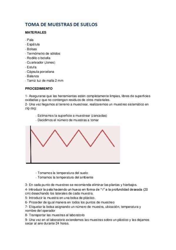 Toma de muestras de suelo mediante muestreo sistemático en zig-zag, y posterior secado, cuarteo con cuarteador Jones, tamizado y secado en estufa.