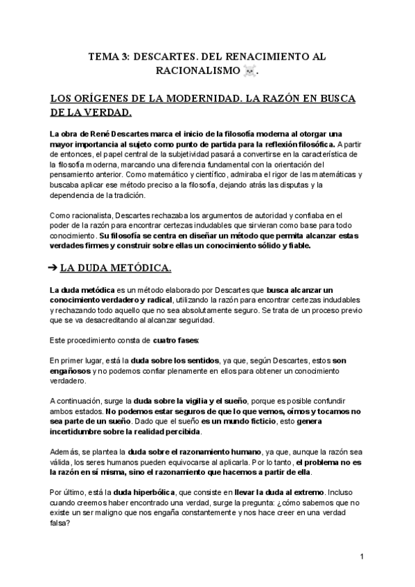 Apuntes de Descartes para Selectividad – Historia de la Filosofía