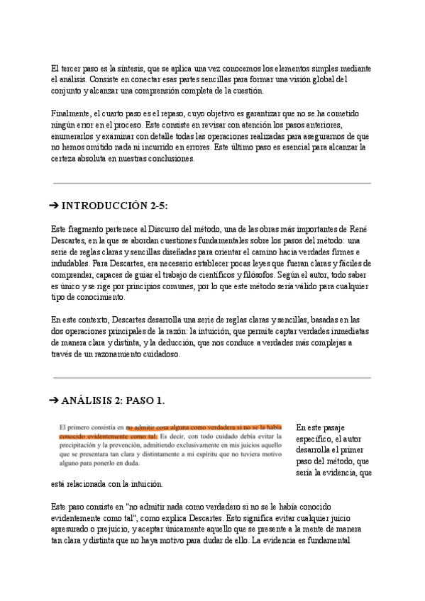 Comentarios de textos de Descartes para Selectividad - historia de la filosofía
