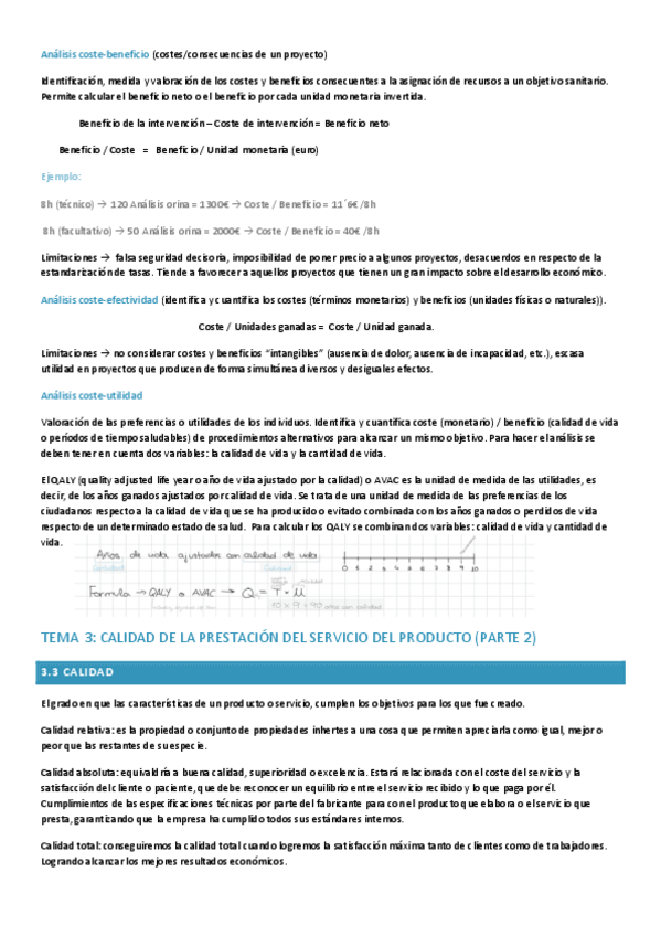 TEMA 3: ECONOMÍA SANITARIA (PARTE 1) TEMA 3: CALIDAD DE LA PRESTACIÓN DEL SERVICIO DEL PRODUCTO (PARTE 2) TEMA 4: EL PROCESO ANALITICO