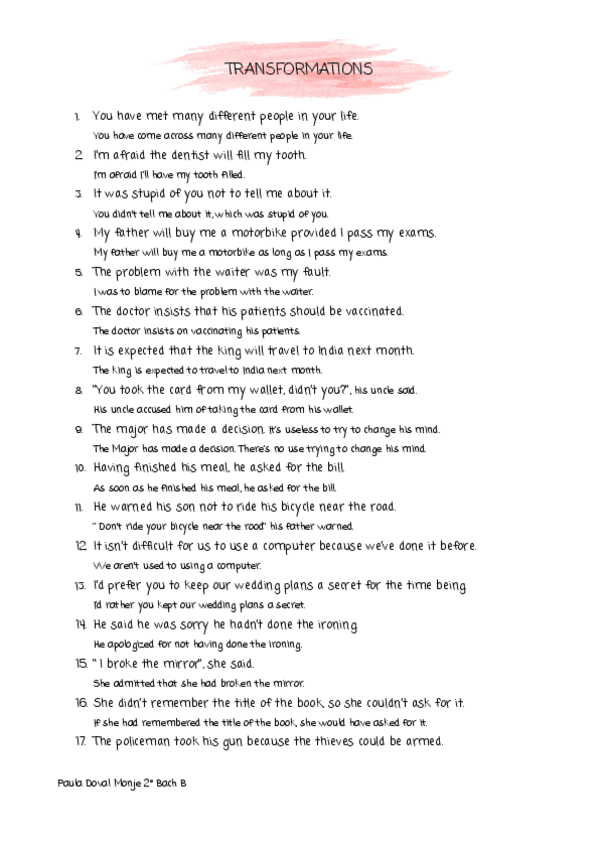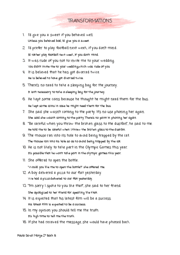 He publicado nuevos apuntes de Inglés: transformaciones y textos