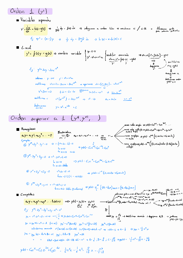 Ecuaciones diferenciales resumen y examen 2024