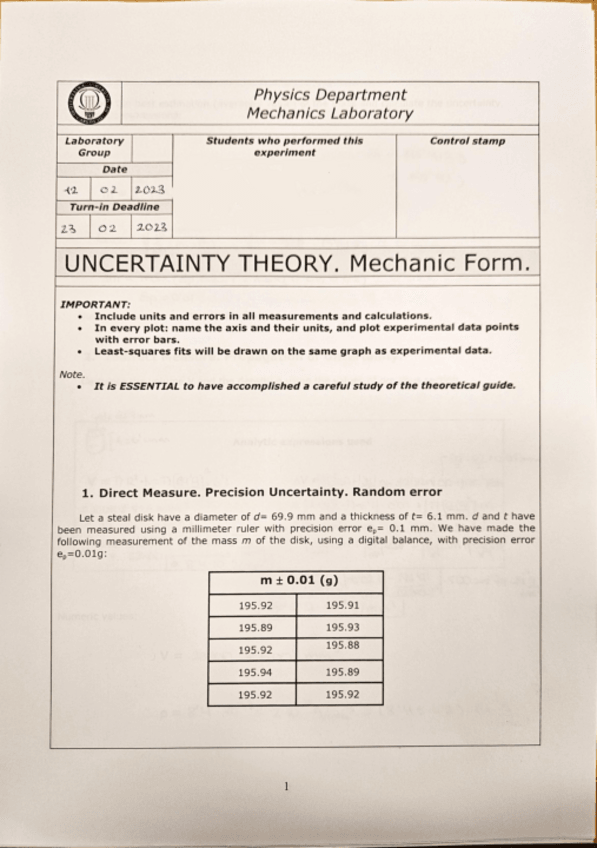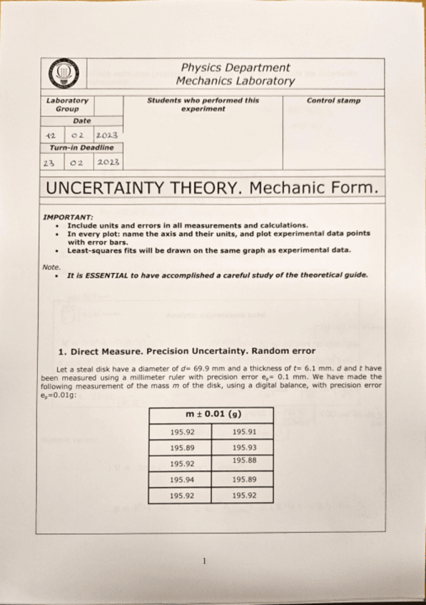 He publicado nuevos practicas de 1º Física I: Uncertainty-laboratory-practice.pdf