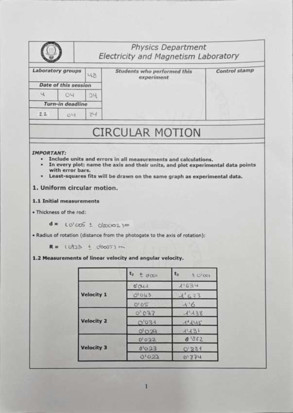 He publicado nuevos practicas de 1º Física I: circular-motion-laboratory-practice.pdf