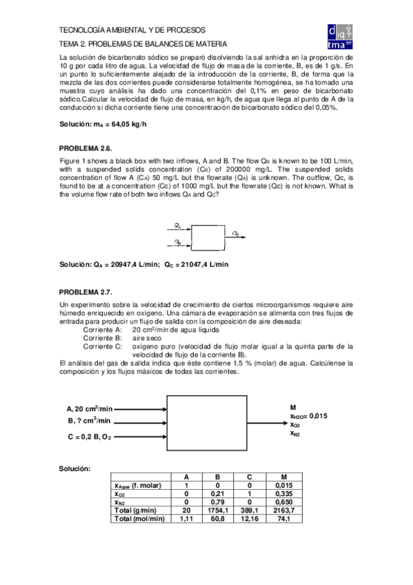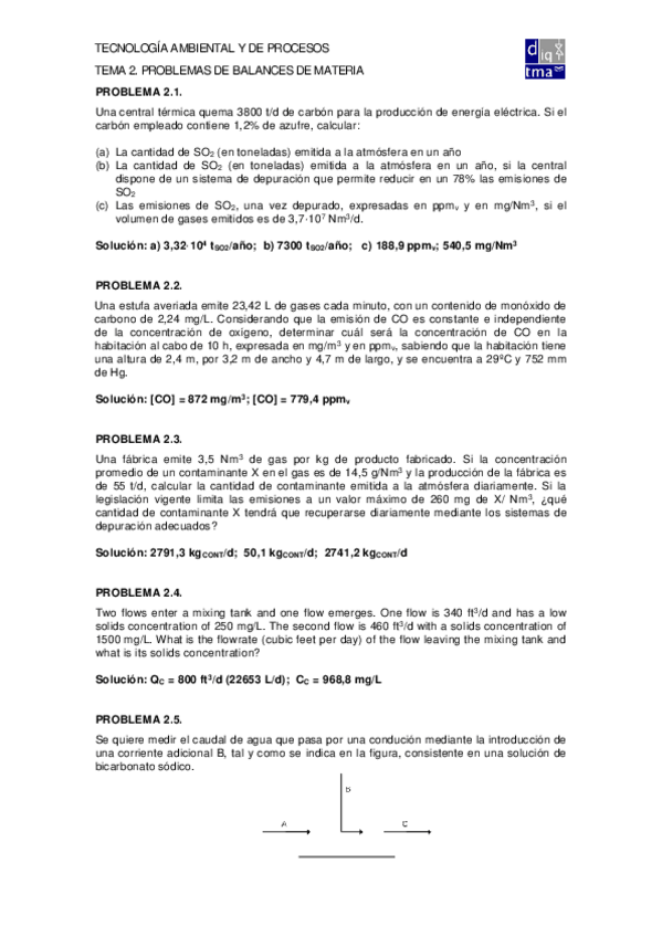 He publicado nuevos ejercicios de 1º TECNOLOGÍA AMBIENTAL Y DE PROCESOS : TAPTema2Problemas.pdf
