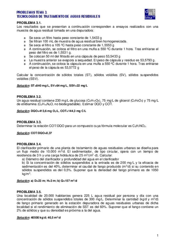 He publicado nuevos ejercicios de 1º TECNOLOGÍA AMBIENTAL Y DE PROCESOS : TAPTema3Problemas.pdf