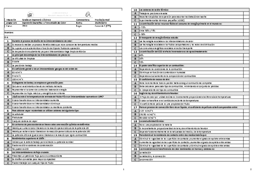 He publicado nuevos examenes de 3º Ingeniería energética y Transmisión de Calor: Examenes y Algun Tipo Test