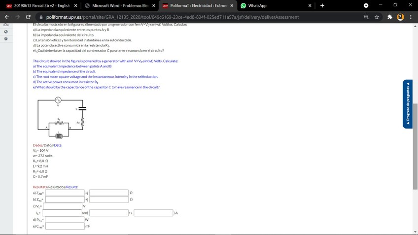 He publicado nuevos examenes de 1º Electricidad: Examen Online Tema 6: Corriente Alterna