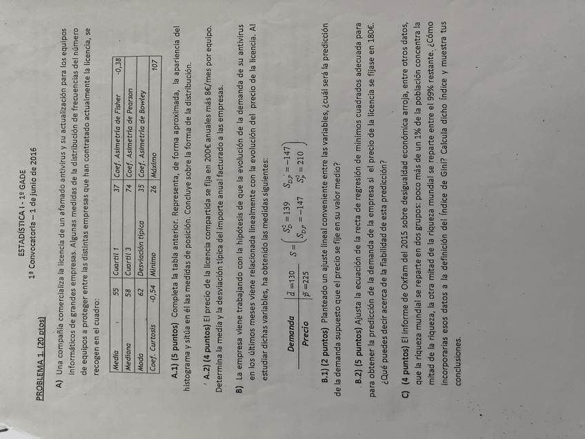 He publicado nuevos examenes de 1º Estadística I: Examen junio 2016