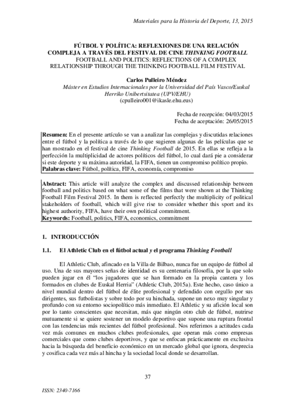 He publicado nuevos apuntes de 2º Teoría e Historia de la Actividad Física y del Deporte: Artículo Fútbol y Política.pdf