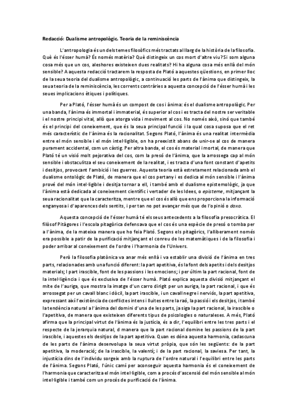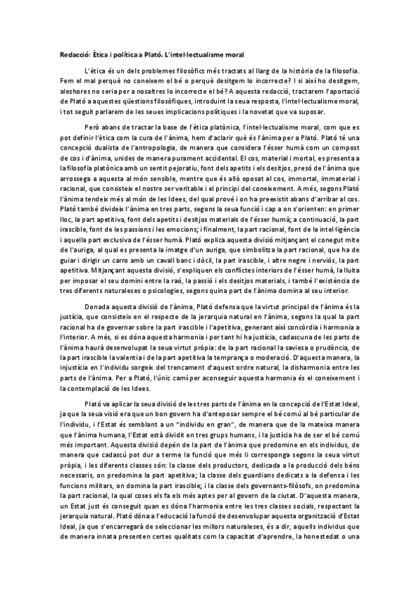 Traducció i anàlisi text Plató PAU