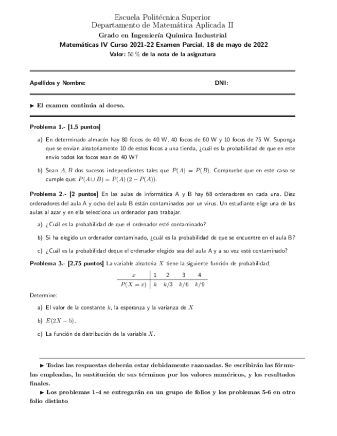 He publicado nuevos examenes de 2º Matemáticas IV: ExamenParcialQuimica.pdf