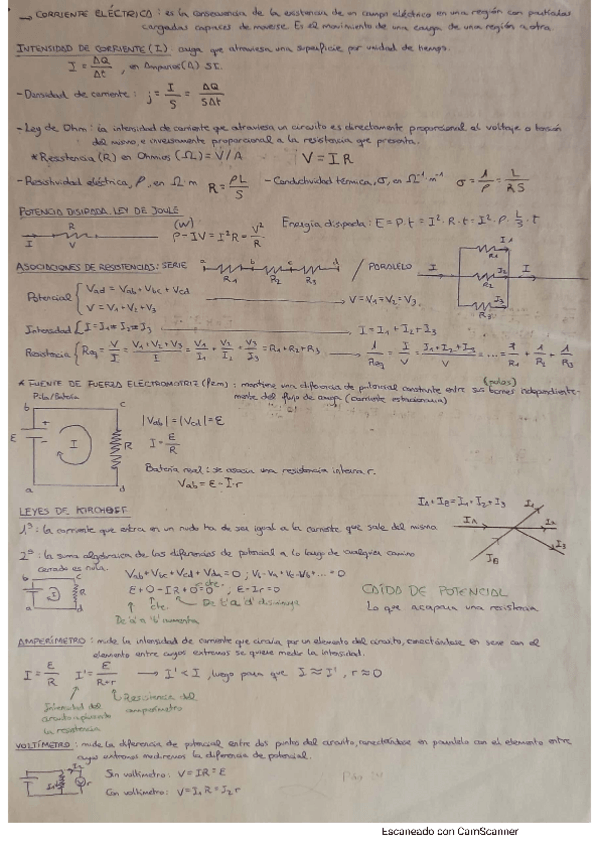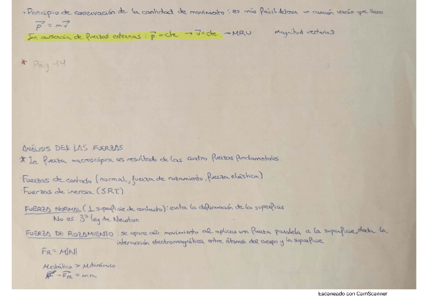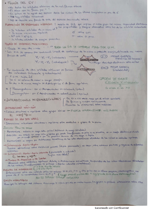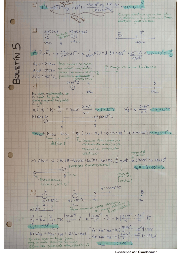 Contiene los resultados subrayados y notas y detalles en verde