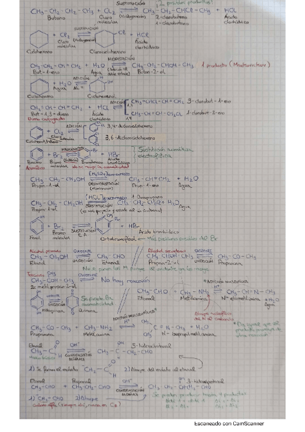 Incluye nombre de los compuestos, tipo de reacción y algunos detalles