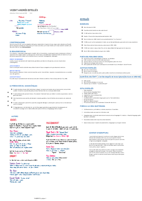 Ací trobaràs resums/esquemes dels 4 autors que es demanen en selectivitat i t'hauràs d'estudiar durant el curs acadèmic.