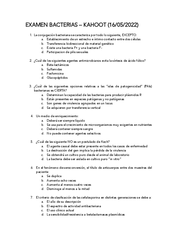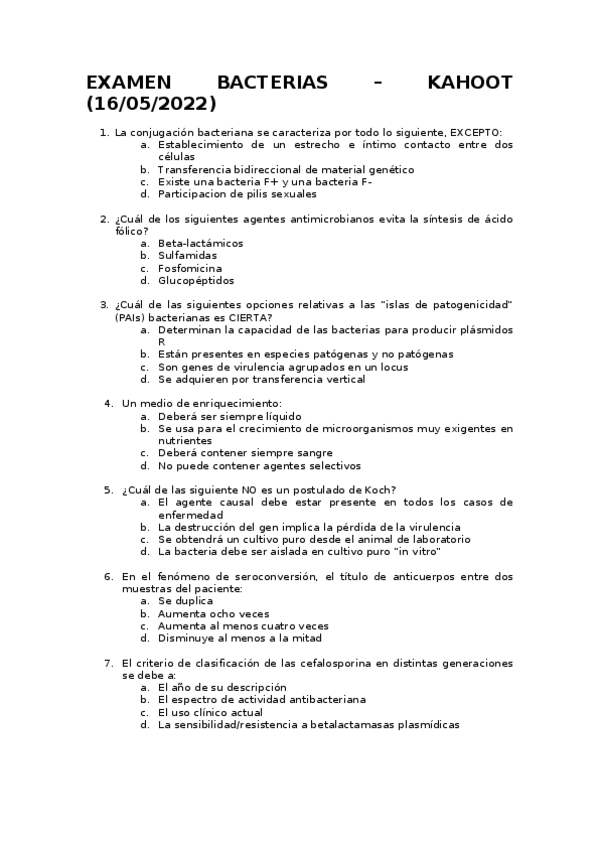 Examen Kahoot Bacterias 2022