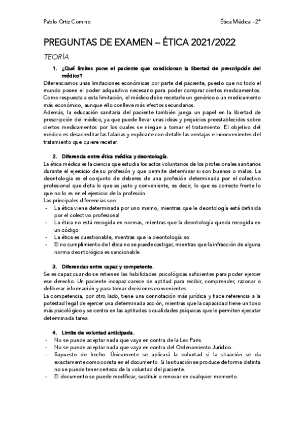 He publicado nuevos examenes de 2º Ética Médica: Preguntas-examen-etica.pdf