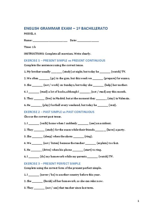 He publicado nuevos examenes de 1º Inglés I: EnglishGrammarExamModelA.pdf
