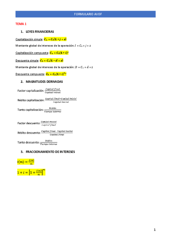 He publicado nuevos apuntes de 2º Análisis y valoración de las operaciones financieras: TEMARIO RESUMIDO + FÓRMULAS