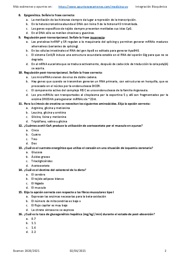 He publicado nuevos examenes de 2º Integración bioquímica y bioquímica clínica: Examen-2021-con-respuestas.pdf