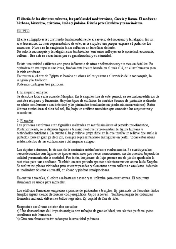 Título del tema: El diseño de las distintas culturas, los pueblos del mediterráneo, Grecia y Roma. El medievo: bárbaro, bizantino, cristiano, árabe y judaico. Diseño precolombino y renacimiento.