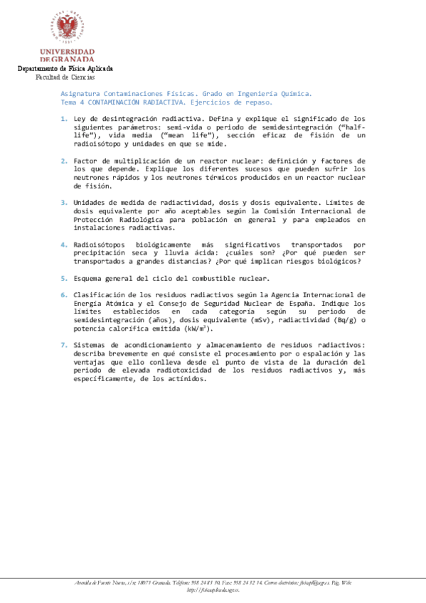 He publicado nuevos ejercicios de 4º Contaminaciones Físicas: Ejercicios de clase